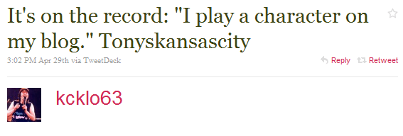Let me help you a bit with what Tony actually means when he says he is "just playing a character." I've met him and spoken with his supposed real self, so I think I can offer some insight.
