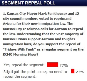 RIGHT NOW CHRIS STIGALL AND HIS D-BAG LISTENERS ARE RAGING AGAINST MAYOR FUNKY FOR HIS VOTE AGAINST ARIZONA HATE LAW!!!