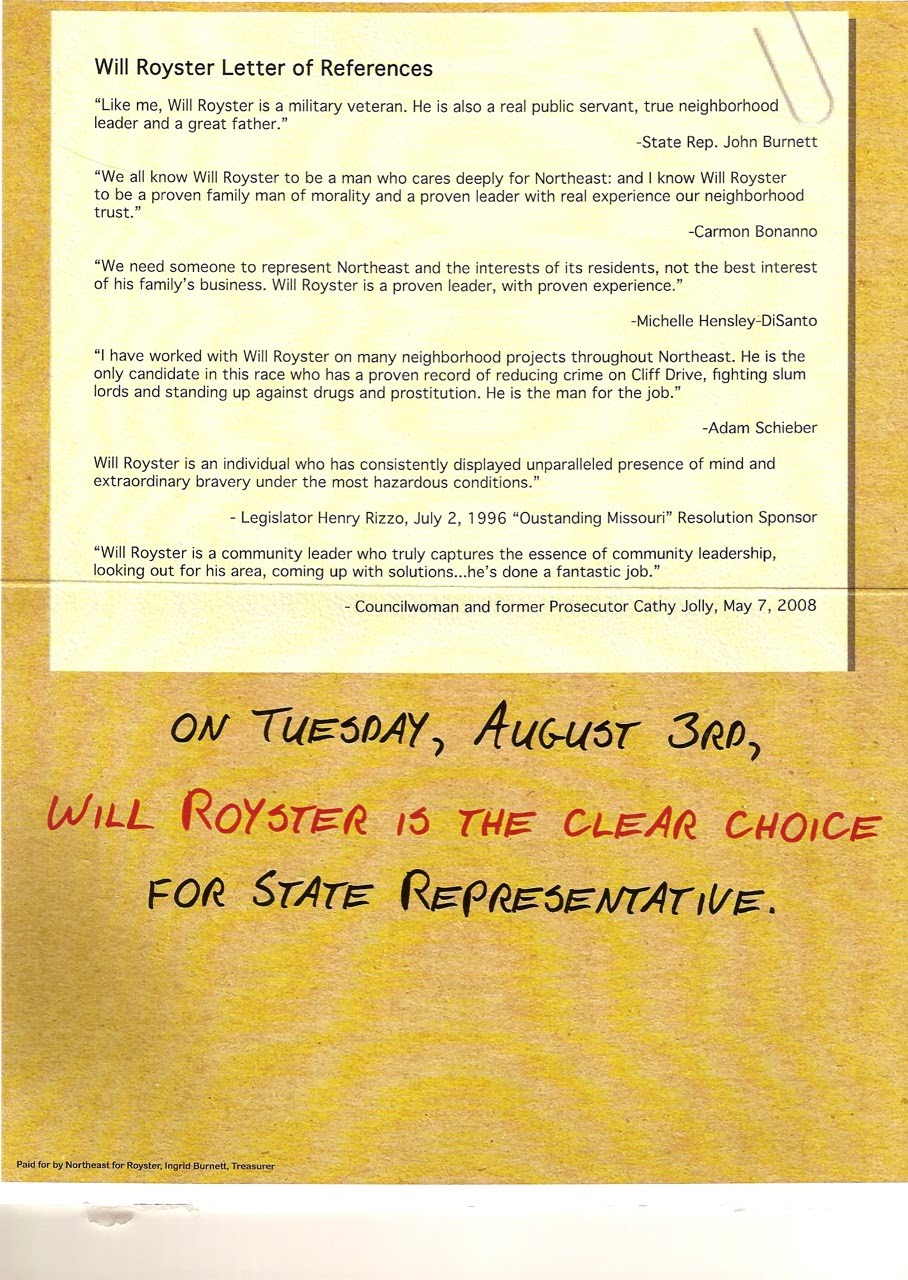 There are two ways to look at a recent mailer from The Royster camp in the Missouri House District 40 Race . . .