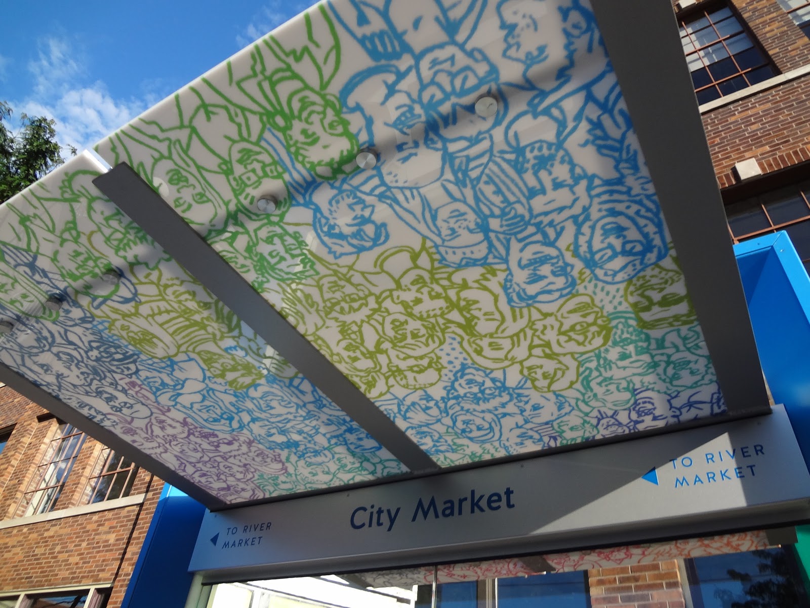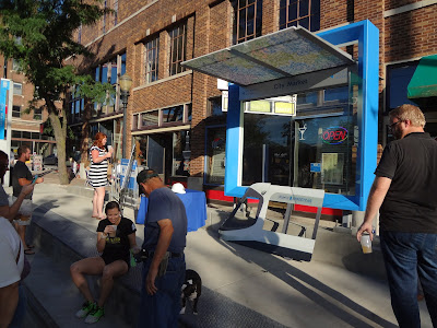 Half of a $100K grant for toy train streetcar terminal stop, we recently offered glimpse of the Celina Curry artwork . . . Now here's a look at the final display: