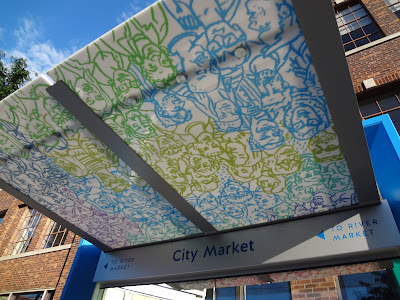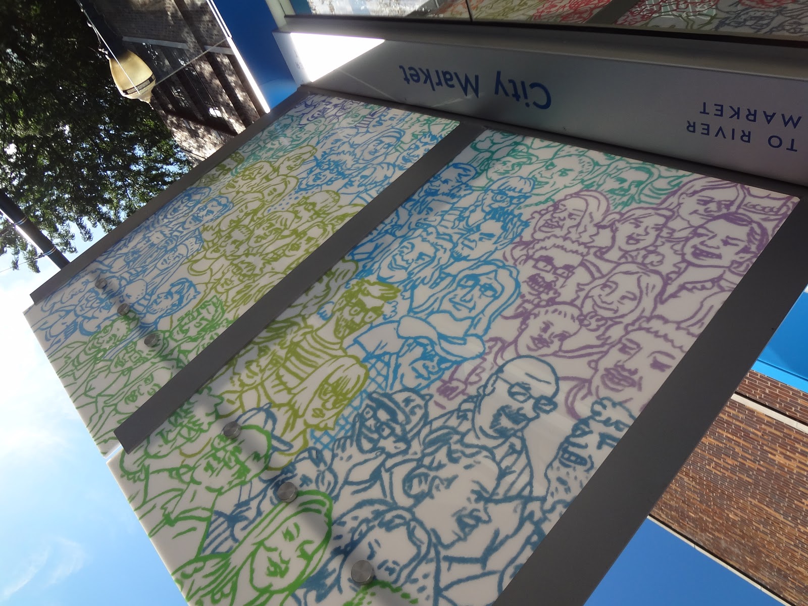 Check the sketches right side up . . . They're angled so that people waiting on the streetcar (instead of walking) can look up and enjoy . . . Kinda like one of those porno mirror above the bed deals.