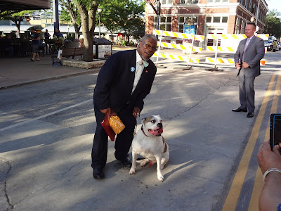 Mayor Sly was happy to take pix for the crowd despite the fact that this doggie doesn't seem very interested: